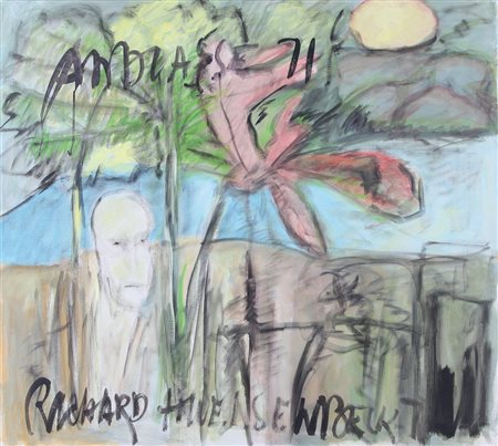 RICHARD HUELSENBECK Frankenau (Germania) 23/04/1892 - Muralto (Svizzera) 30/04/1974 Dada, 1971 olio su tela cm. 80x90, firma in basso, anno in alto, firma, titolo, anno e dichiarazione d'autenticità a firma Pagani al retro.