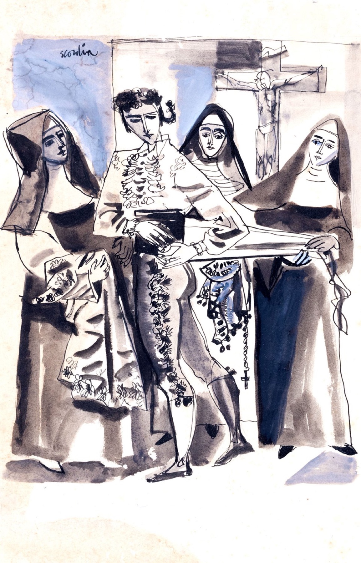 Antonio Scordia (Santa Fè 1918-Roma 1989) - Suore e torero