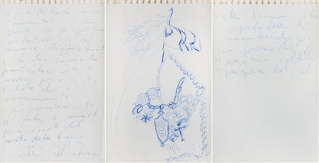 GASTONE NOVELLI Vienna (Austria) 01/08/1925 - Milano 22/12/1968 Mapia Tinos, (1962-65) penna su carta cm. 13,5x9 opera non firmata, timbro della Galleria L'Elefante Arte Contemporanea (TV) al retro, disegno che fa parte di un taccuino convenzionalmente numerato Taccuino T1962-65.5 (Viaggio in Grecia), opera registrata presso l'Archivio Gastone Novelli come da dichiarazione su foto. Viaggio in Grecia, (1962-65) penna su carta cm. 13,5x9; opera non firmata, timbro della Galleria L'Elefante Arte Contemporanea (TV) al retro, disegno che fa parte di un taccuino convenzionalmente numerato Taccuino T1962-65.5 (Viaggio in Grecia), dichiarazione d'autenticità della Galleria L'Elefante Arte Contemporanea su foto. Viaggio in Grecia, (1962-65) penna su carta cm. 13,5x9; opera non firmata, timbro della Galleria L'Elefante Arte Contemporanea (TV) al retro, disegno che fa parte di un taccuino convenzionalmente numerato Taccuino T1962-65.5 (Viaggio in Grecia), dichiarazione d'autenticità della Galleria L'Elefante Arte Contemporanea su foto. Opere esposte nella mostra "Gastone Novelli fogli di viaggio" tenutasi dal 14 ottobre al 15 novembre 2006 presso la Galleria L'Elefante (TV).