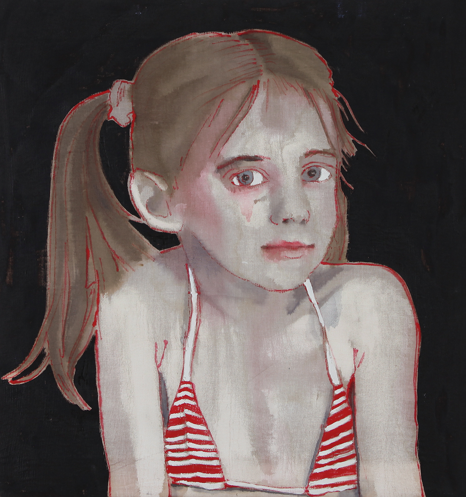 ROBERTA SAVELLI Giussano 1969 Ritratto di bimba olio e tecnica mista su tela cm. 65x60, opera non firmata, priva di cornice.