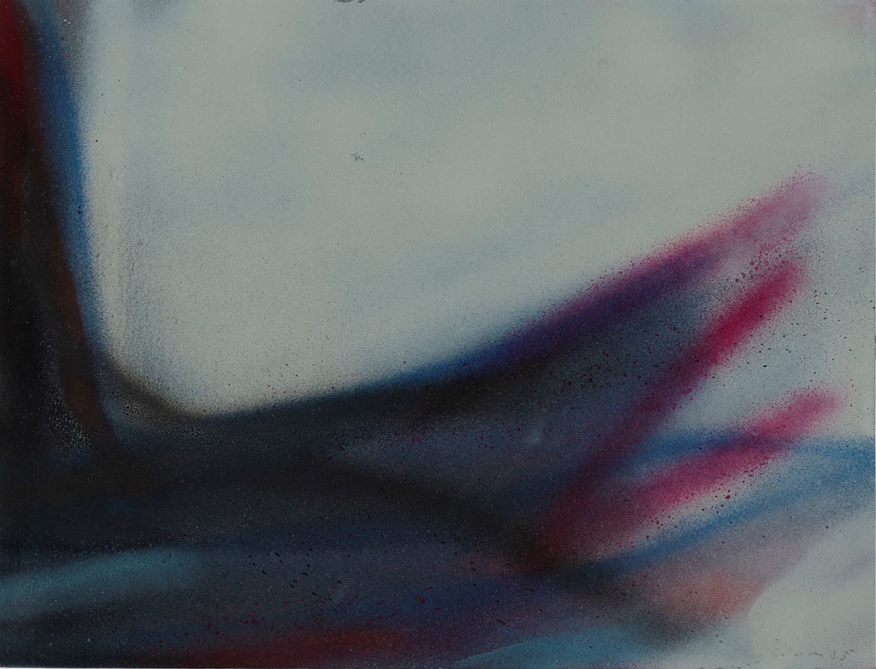 2) Senza titolo, tempera a spruzzo su cartoncino, cm 26 x 18.