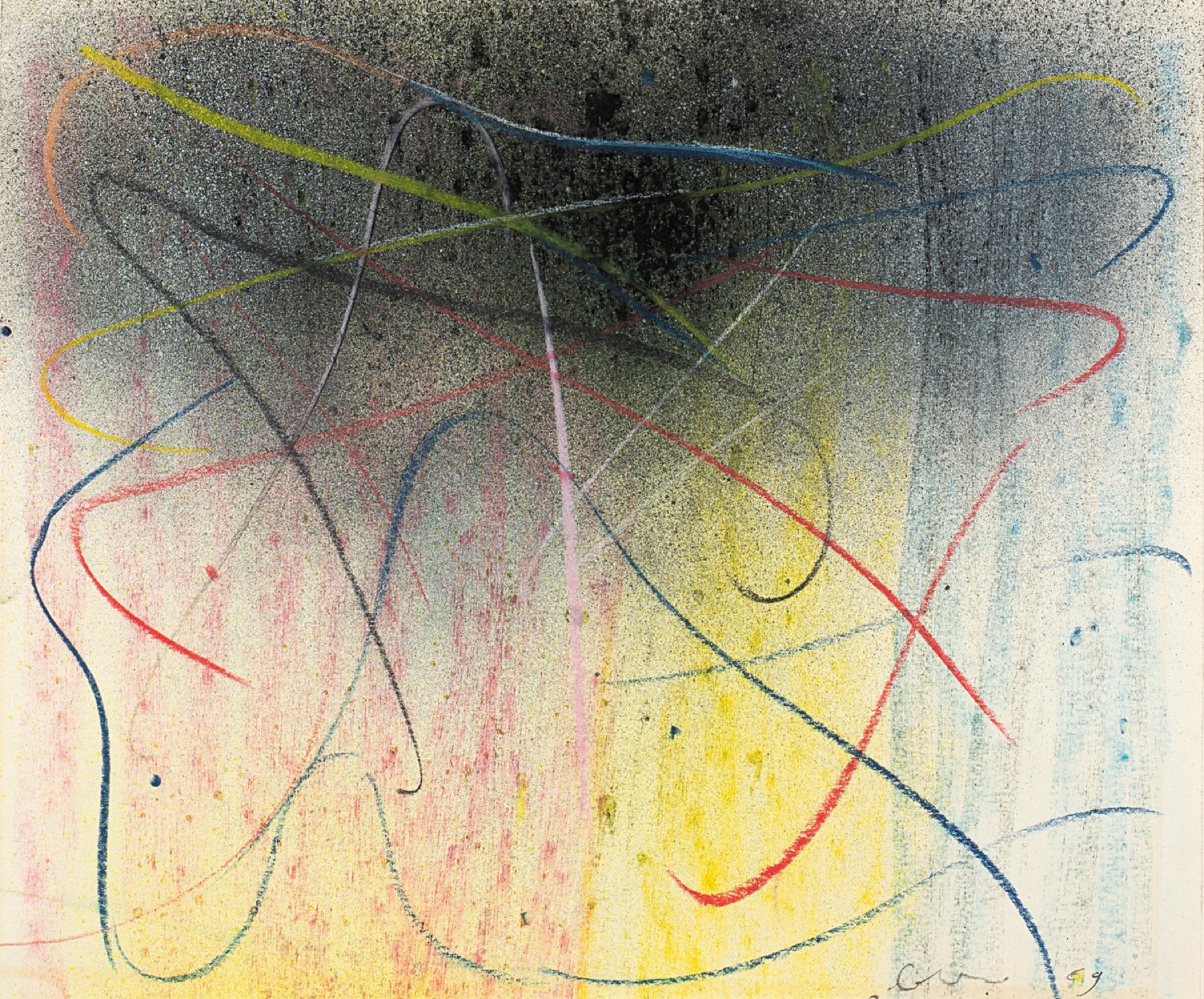 1) Senza titolo, 1989, pastelli a cera su cartoncino, cm 25,5 x 31. Firmato e datato in basso a destra: Olivieri 89