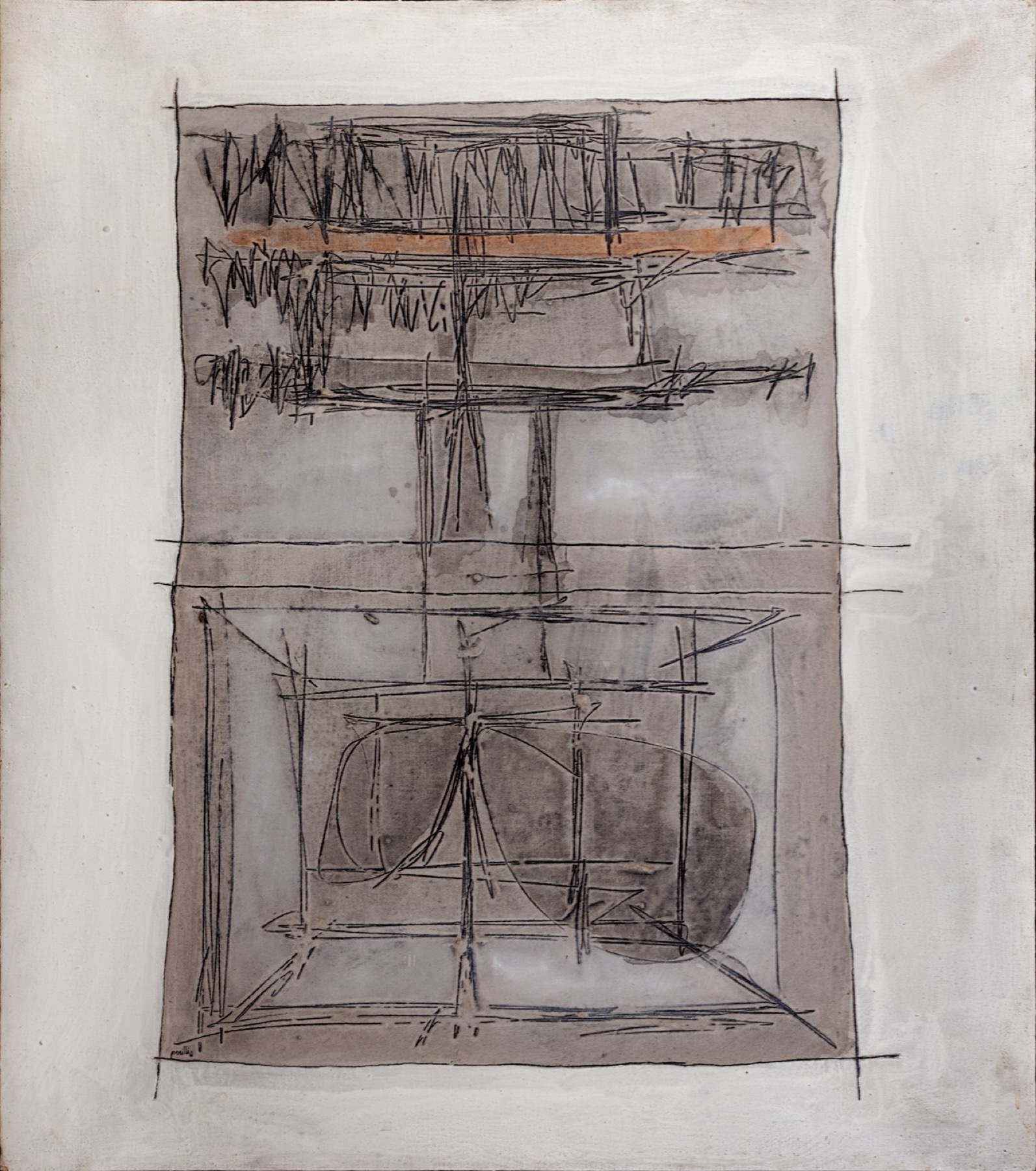 Firmato al verso: Achille Perilli, La profezia suicida, 1961
