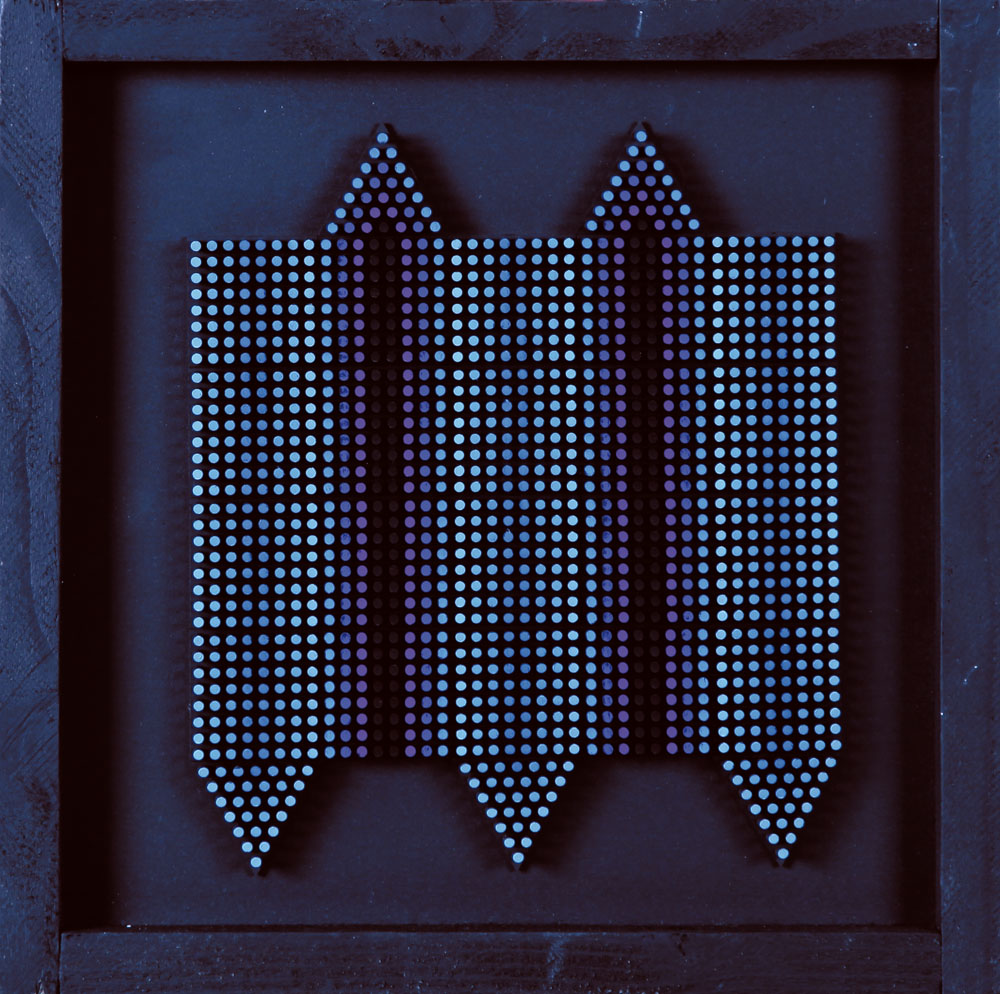 FRANCO COSTALONGA Venezia 1933 PSVBBB gradienti di luminosità (plastiche) su masonite cm. 30x30, firma e titolo al retro, dichiarazione d'autenticità dell'artista su foto.