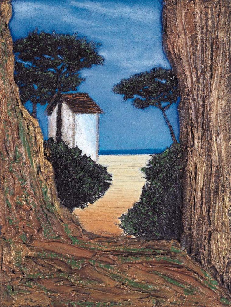 MARIO PASCHETTA Milano 27/04/1949 Versilia, 1996 malte e terre naturali su tela cm. 40x30, firma, titolo e anno al retro, dichiarazione d'autenticità e archivio numero 42 dell'artista su foto, pubblicato sul catalogo della mostra "Mario Paschetta La mia Toscana" a cura di Lucio Barbera, Edizioni Cinquantasei, tenutasi dal 31 luglio al 20 settembre 1999 presso la Torre Normanna, Castello di Altomonte, Festival Mediterraneo dei Due Mari e dal 28 agosto al 16 settembre 1999 presso la Galleria d'Arte Cinquantasei (Desenzano del Garda), pagina 32.