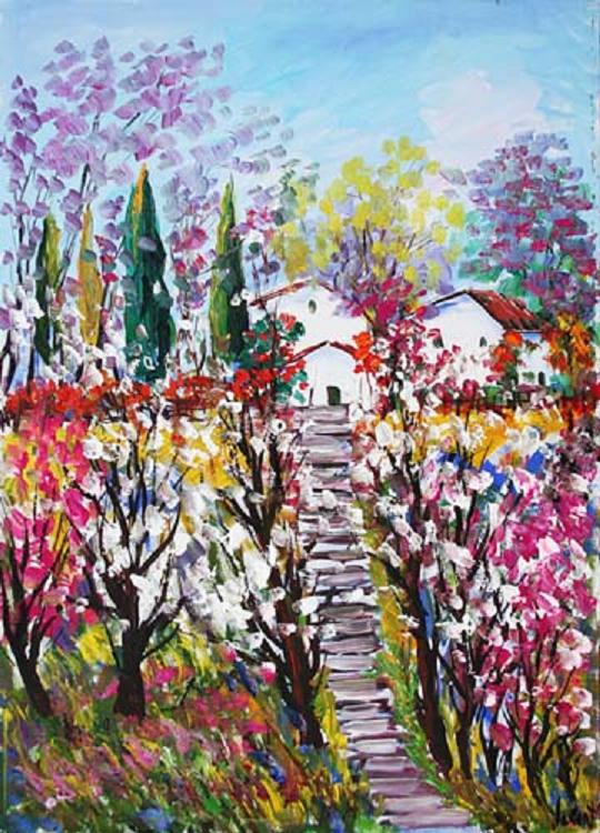 ANTONIO IALENTI Campobasso 12/07/1937 Scalinata della felicità olio su tela cm. 70x50, firma in basso a destra, titolo e firma al retro, dichiarazione d'autenticità dell'artista su foto.