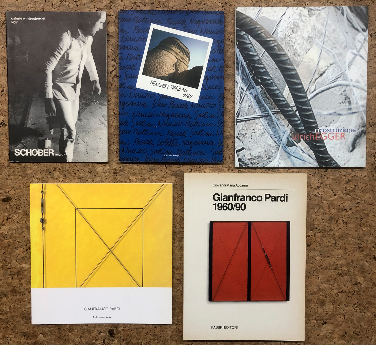 Catalogo riccamente illustrato, a cura di Fabrizio D'Amico e Flaminio Gualdoni, edito in occasione dell'esposizione tenutasi presso Cagli, Torre Martiniana, 1989 (opere di Coletta, Gastini, Icaro, Mattiacci, Nagasawa, Nunzio, Pascali)