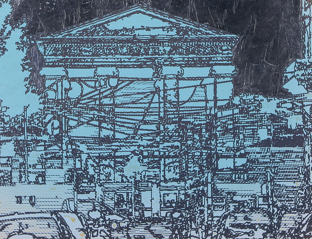 LEONIDA DE FILIPPI Milano 17/04/1969 Paesaggio urbano tecnica mista su carta cm. 30x40, firma, titolo e tecnica al retro, dichiarazione d'autenticità dell'artista su foto.