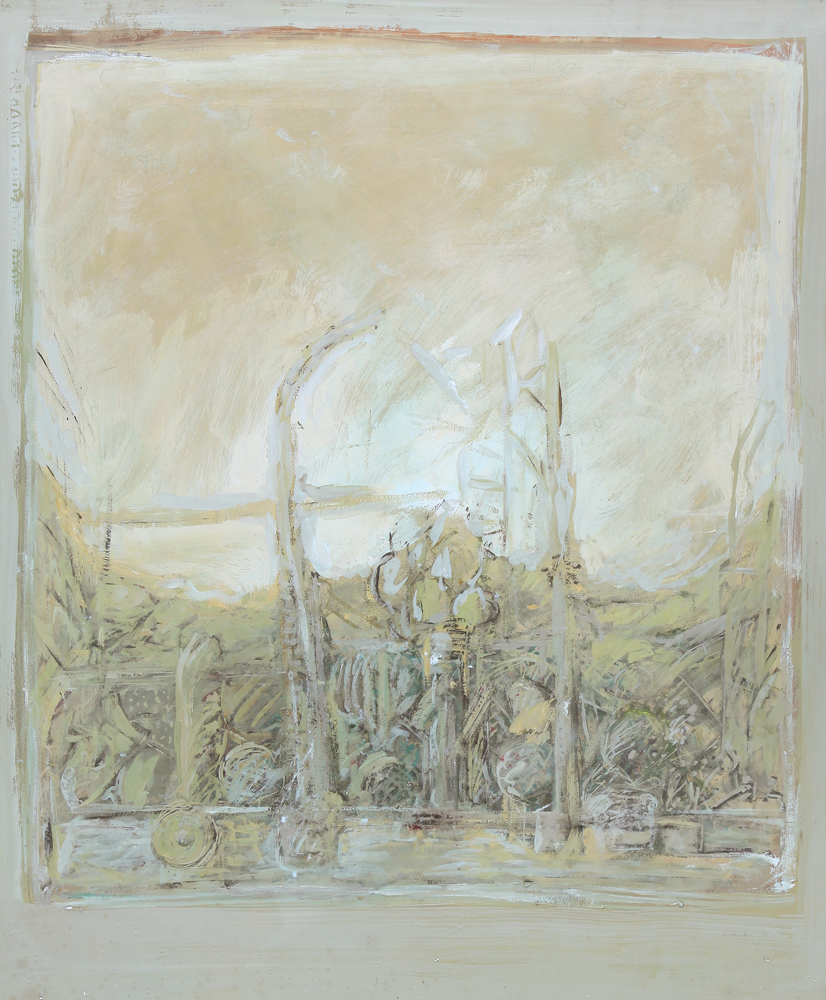 GIANCARLO OSSOLA Milano 1935  Immagine anteriore, 1976 tempera su carta cm. 83x68, firma e anno in basso a destra, titolo, firma e anno al retro, dichiarazione d'autenticità dell'artista su foto.