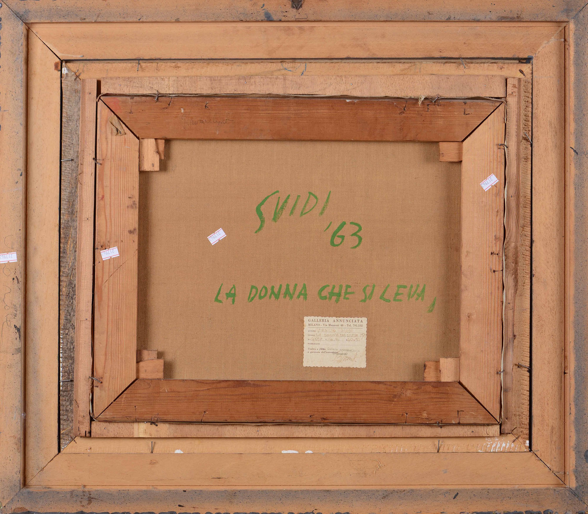 Virgilio Guidi (1892-1984), La donna che si leva, 1963, olio su tela, cm 40x50 firmato, intitolato e datato al retro Etichetta al retro della Galleria Annunciata, Milano