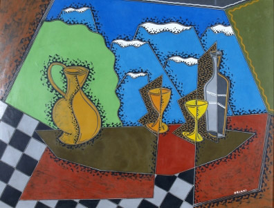 ORIANI PIPPO (Torino 1909 - Torino 1972) “Natura morta” 1960-70 Encausto e graffito su cartone gessato cm. 50x65 Firma in basso a destra. Pubblicato su: "Catalogo Generale P. Oriani", rep. n° OP279, pag. 273. Edizioni Centro Arte Mercurio Milano, 1992.