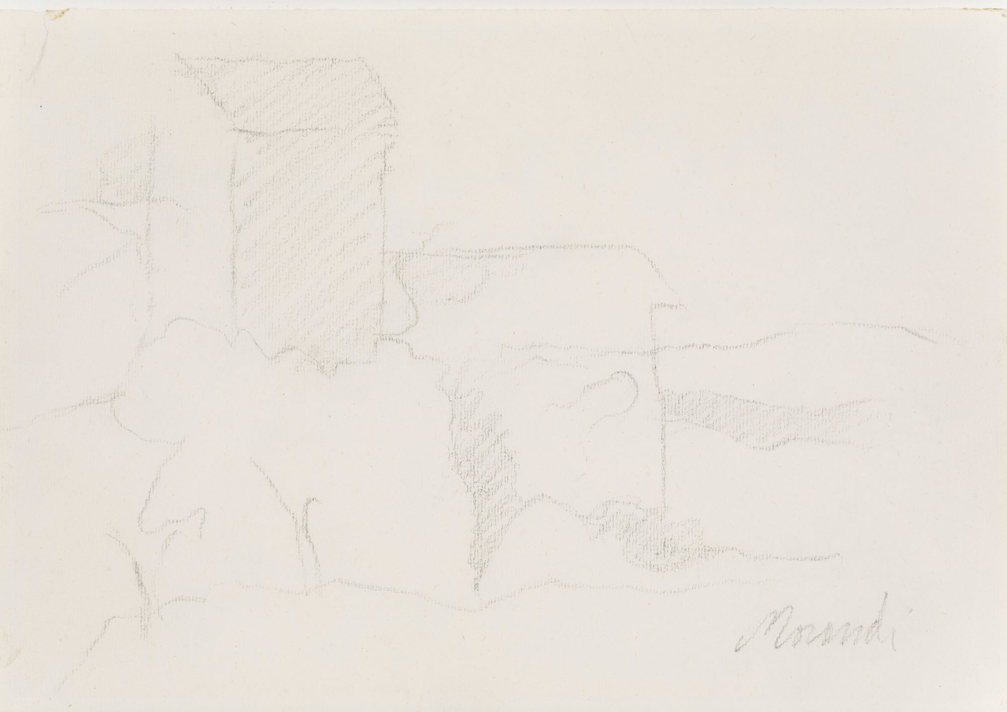 Giorgio Morandi (1890-1964), Paesaggio, s.d. 1960, pencil on paper, 19,5x28cm signed in pencil Work registered at Il Centro Studi Giorgio Morandi, Bologna, under the n. D1960/8, on 9 December 2019, and published on Centro Studi website (page “Nuove acquisizioni al Catalogo Generale”) Provenance: Galleriaforma, Genoa Paolo Minetti collection, Genoa
