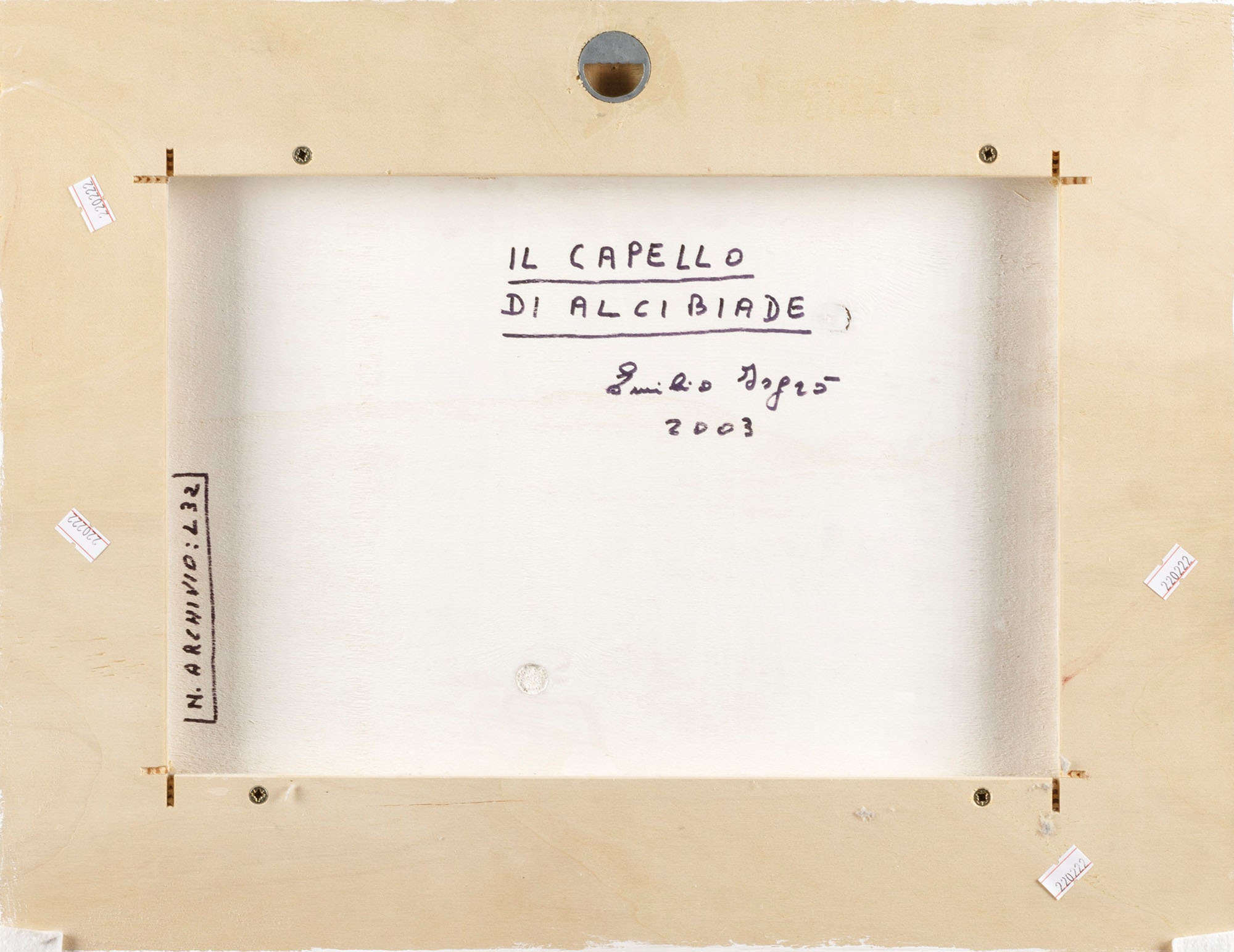 Emilio Isgrò (1937), Il capello di Alcibiade, 2003, tecnica mista su tavola, cm 41x53 firmato, intitolato e datato al retro Autentica dell’artista su fotografia
