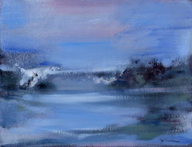 AJMONE GIUSEPPE (Carpignano Sesia 1923 - Romagnano Sesia 2005) “Paesaggio” 2003 Olio su tavola cm. 27x35 Firmato in basso a destra. Timbro al retro del Centro d'arte Mercurio (Mi).