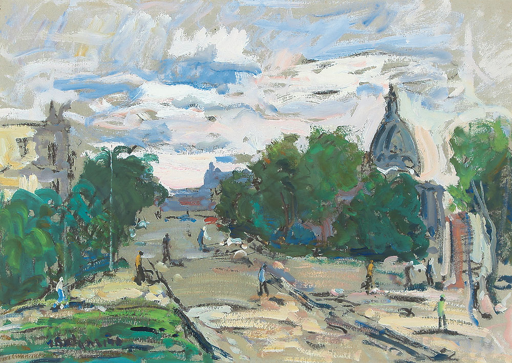 GIOVANNI BALANSINO Savigliano 1912 - Busto Arsizio 1986 Paesaggio tecnica mista su carta cm. 50x70, firma in basso a sinistra.
