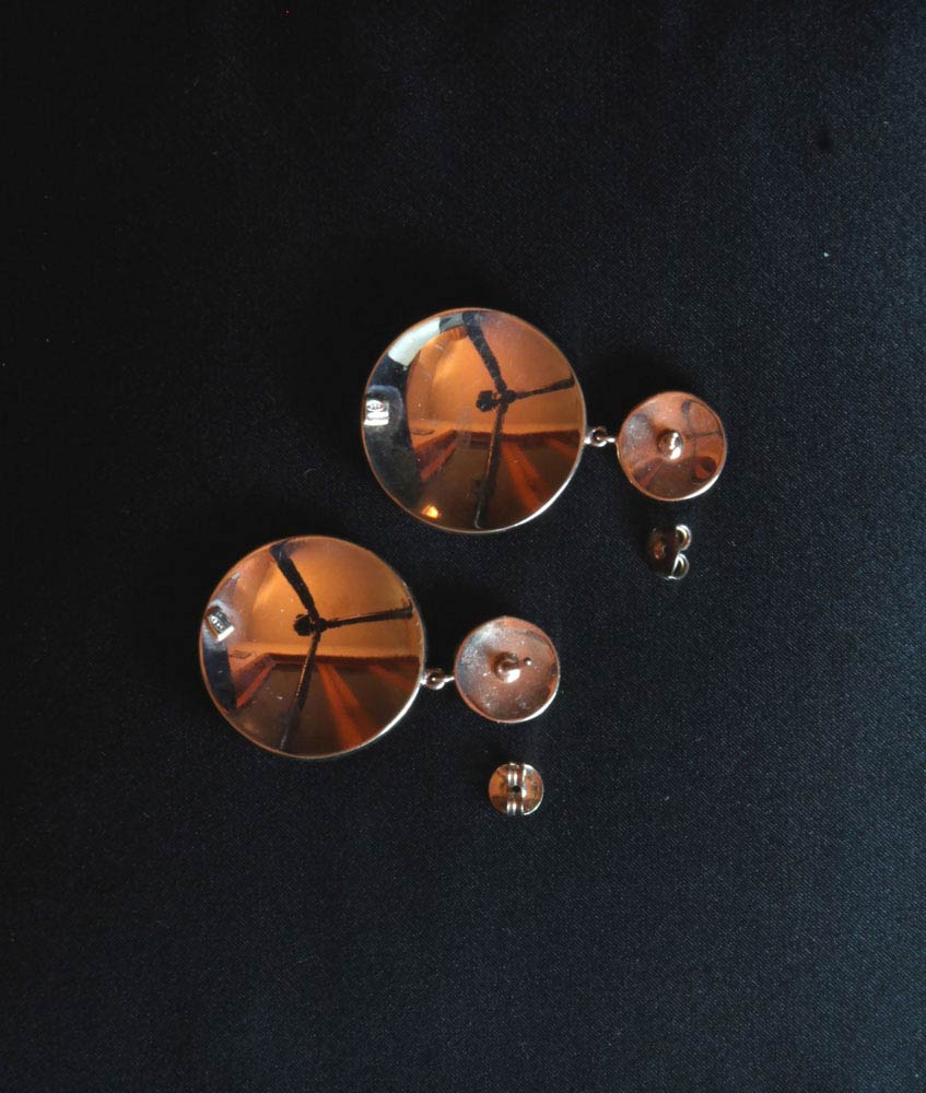 Paio di orecchini "ECHO" in corallo Sciacca e corallo Mediterraneo (Corallium Rubrum). Montatura in argento 925/1000. Manifattura Ascione, Torre del Greco. Lunghezza 45 mm. Diametro disco maggiore 28 mm. Peso 24 gr. Stato di conservazione: *****ottimo.