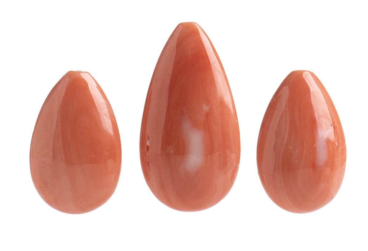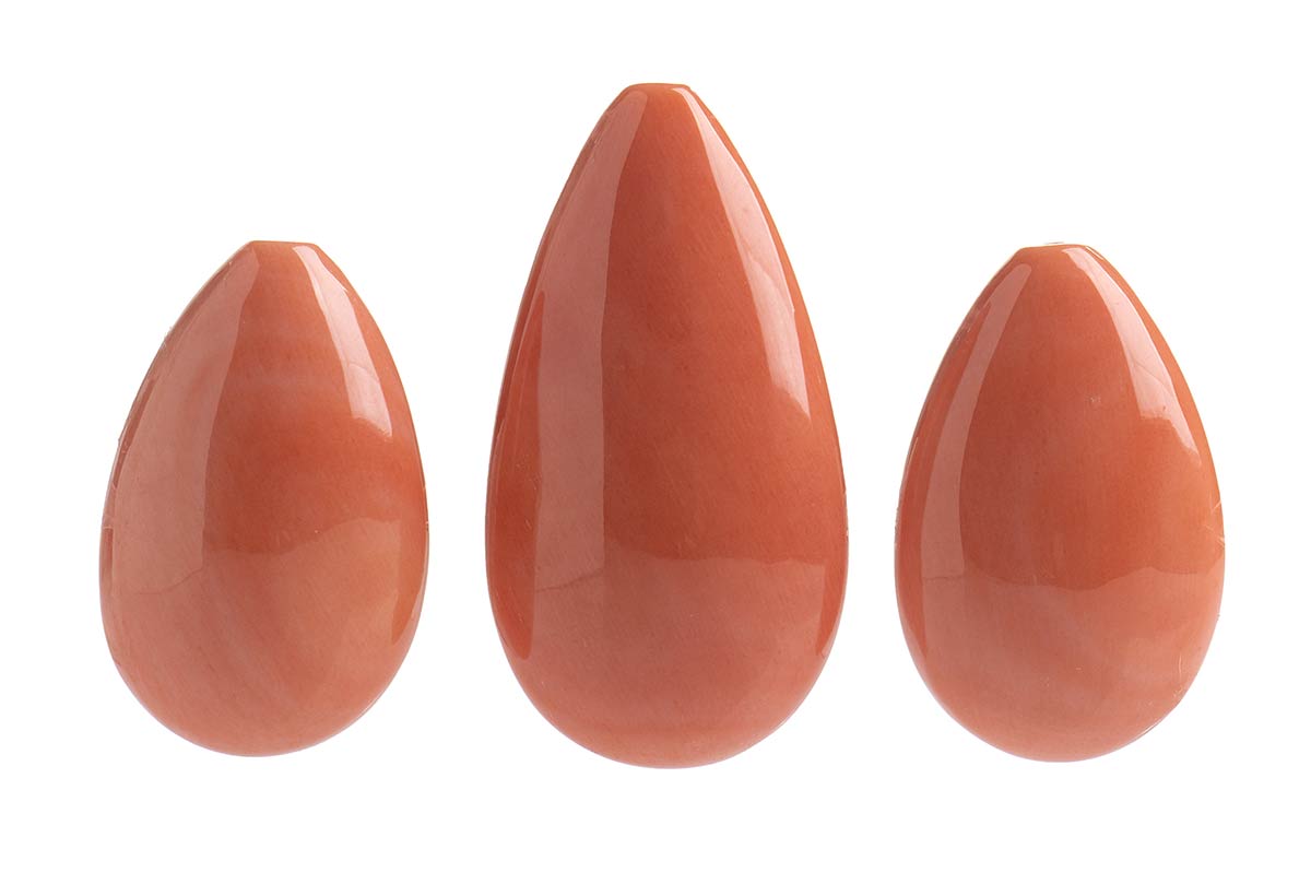 Lotto 249 | Trittico composto da coppia di gocce e pendente lisci in corallo Cerasuolo - Manifattura Guarracino, Torre del Greco