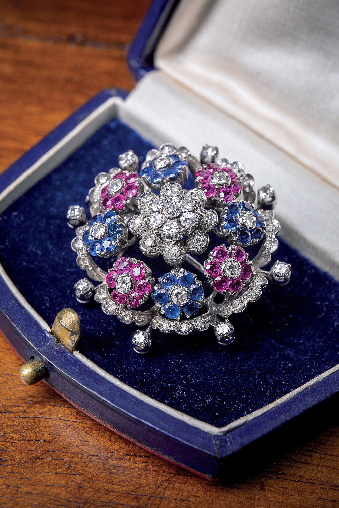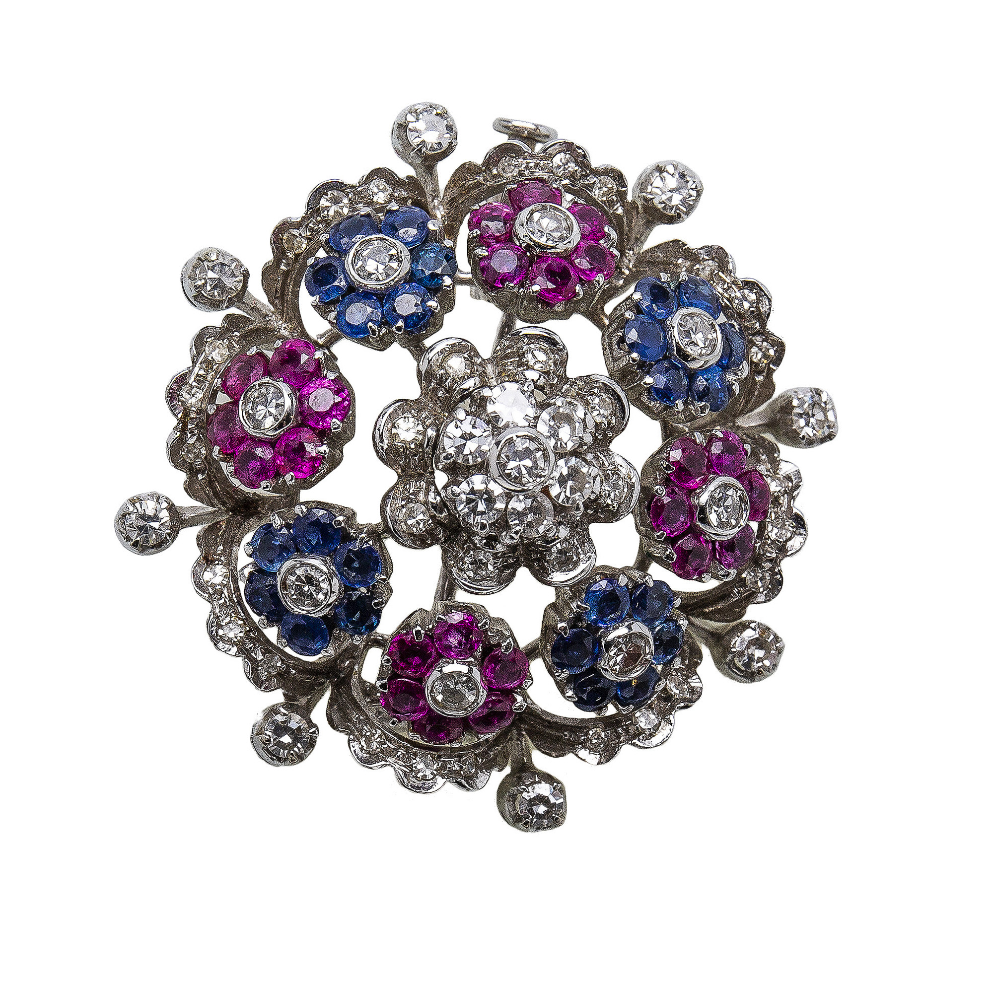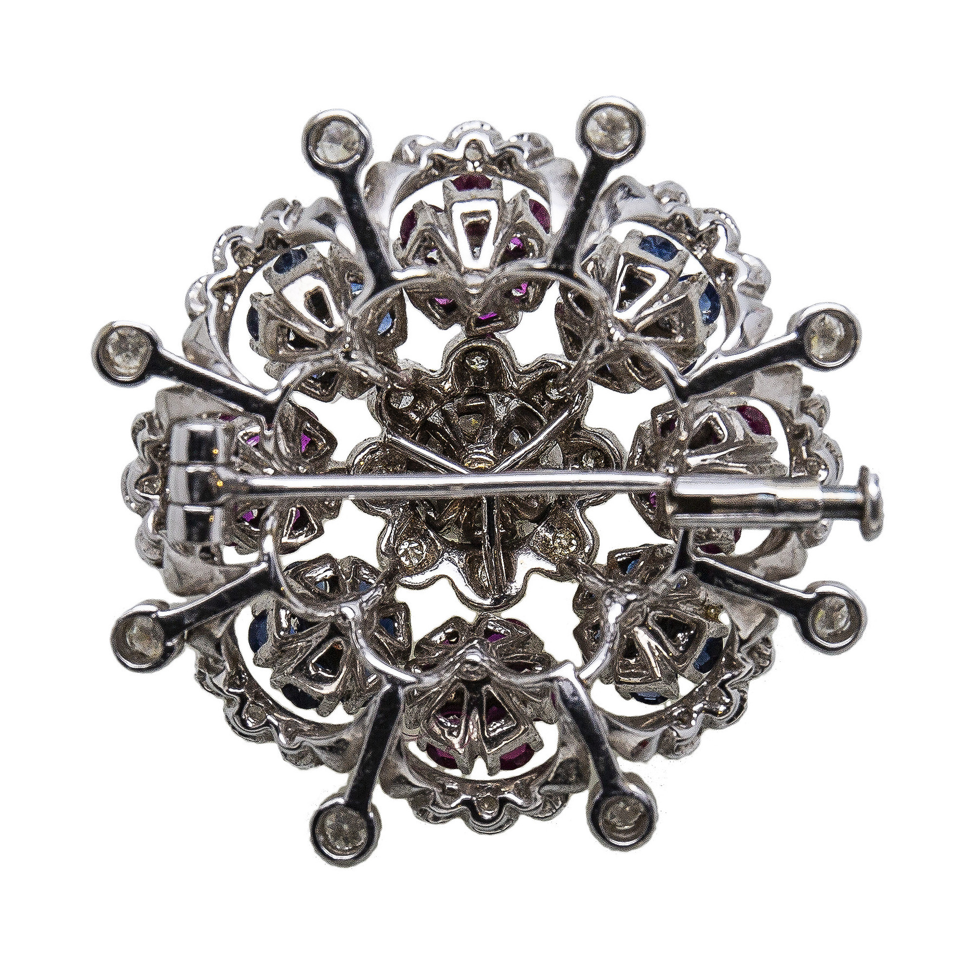 Lotto 11 | Spilla in oro 18 kt con diamanti e pietre preziose