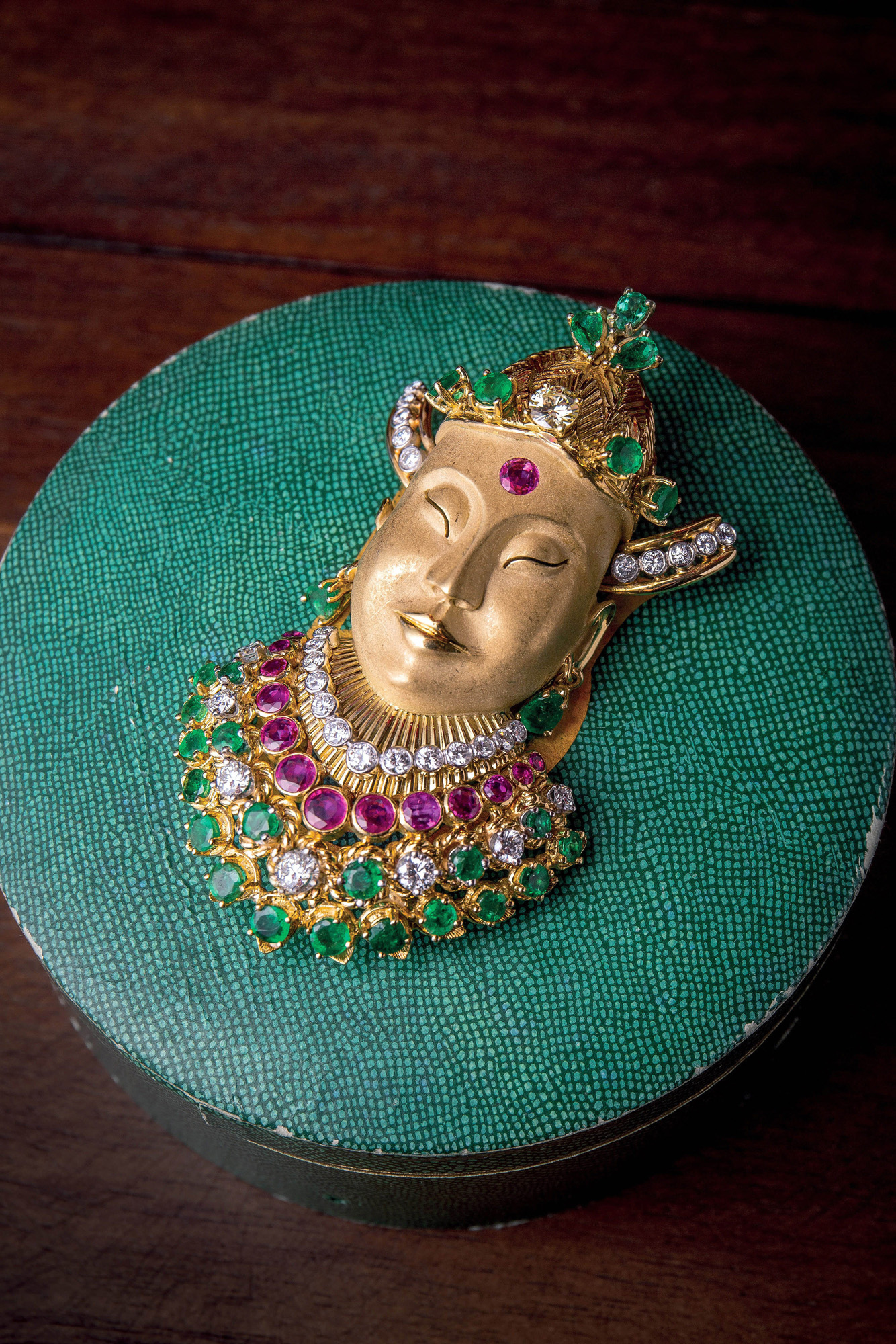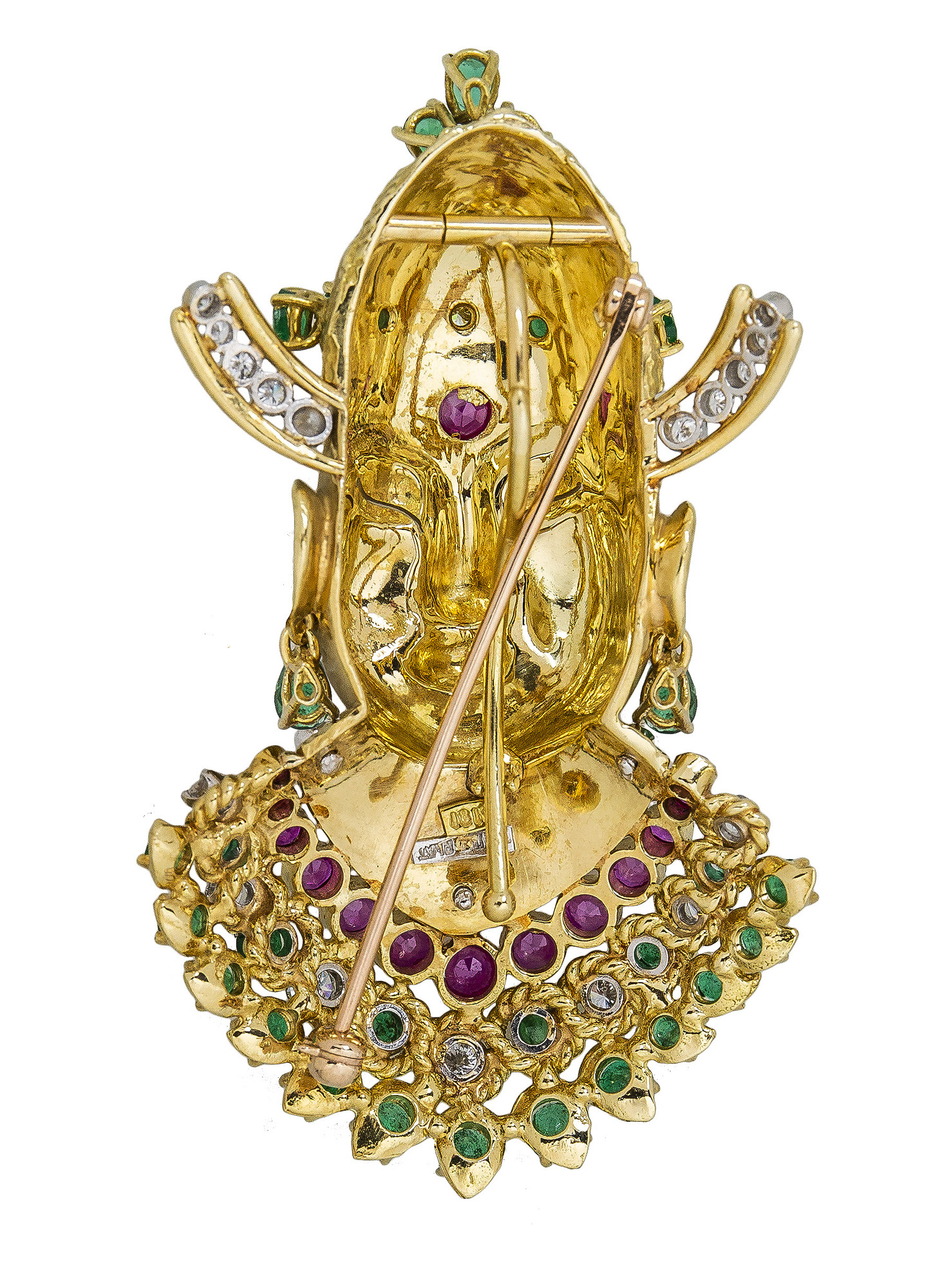 Lotto 15 | Spilla in oro 18 Kt con diamanti e pietre preziose
