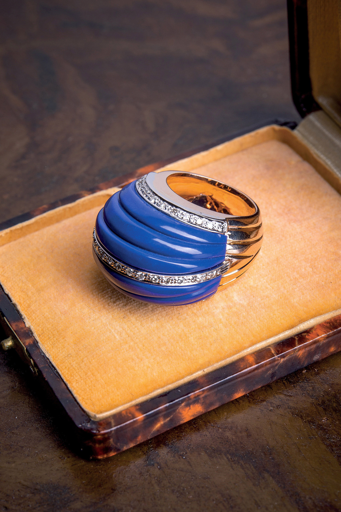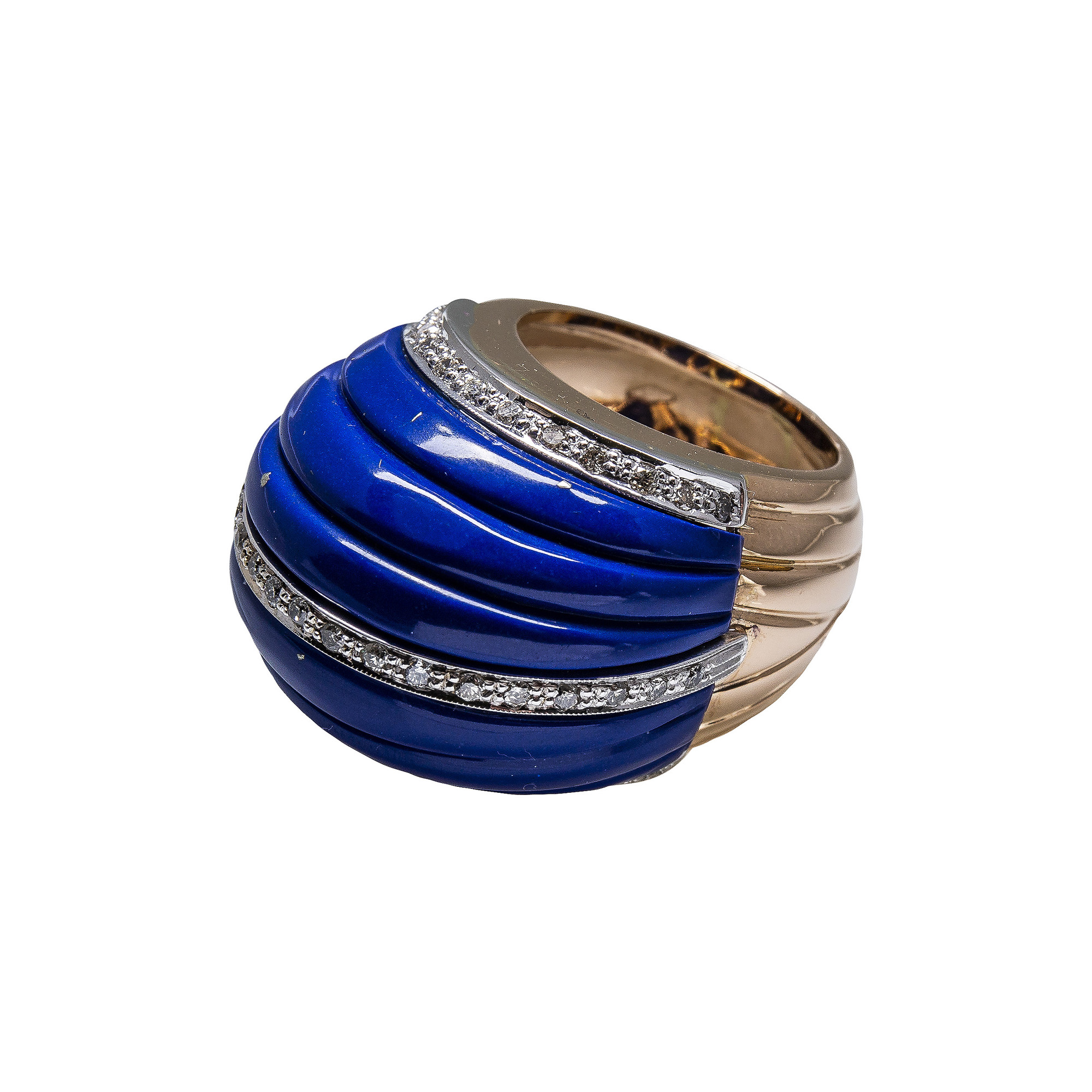 Anello in oro 18 Kt con lapislazzuli e diamanti