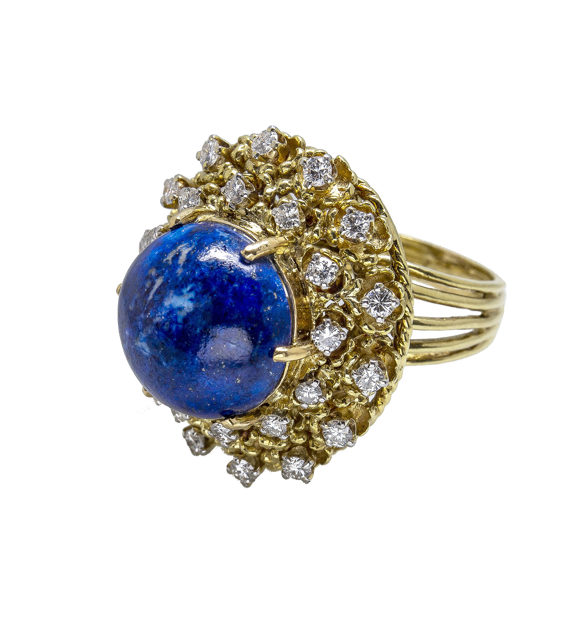 Lotto 41 | Anello in oro 18 Kt con diamanti e lapislazzuli