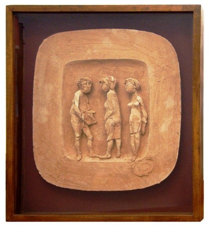 SILVANO PULCINELLI Pisa 1916 – Zambra 1999 Senza titolo, 1971 Terracotta 43 x 37 x 5 ca. Firma e data in b. a d. L’opera e all’interno di una teca di legno e vetro 57 x 49 x 6.