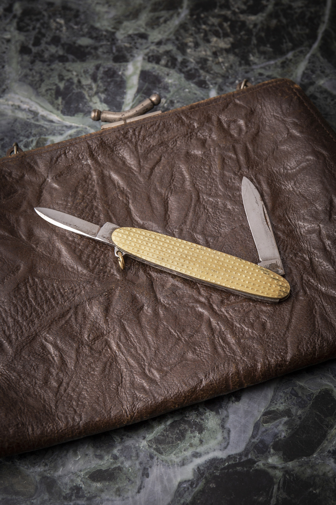 Coltellino in oro 18 Kt con zigrinatura sul corpo. Il peso è 23, 11 gr