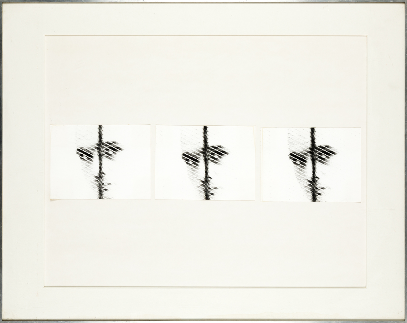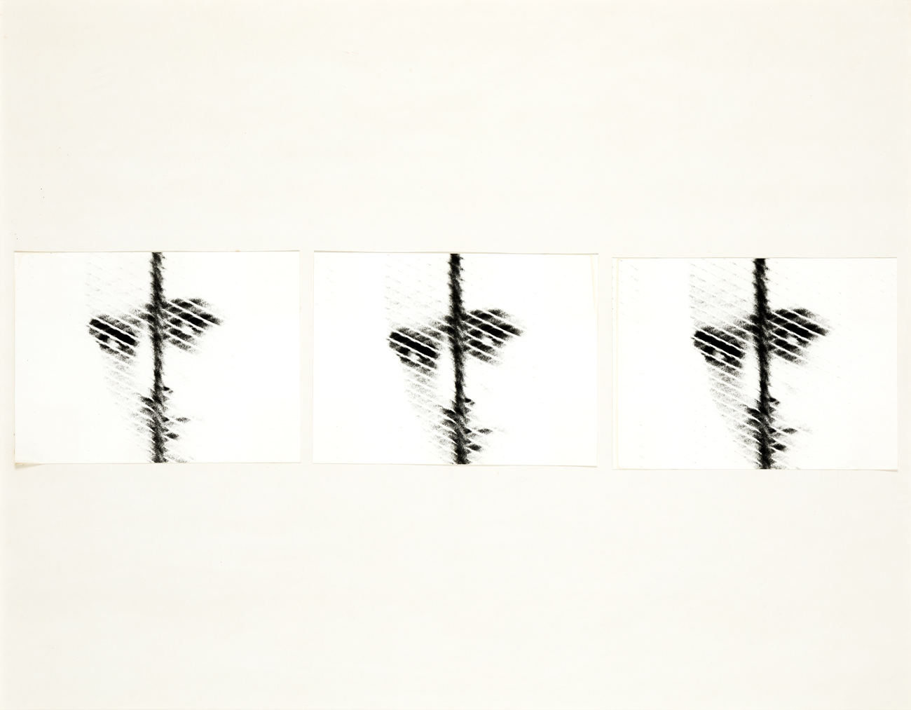 Tre fotografie in bianco e nero applicate su cartoncino