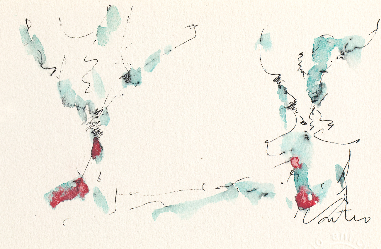 Matita, acquerello e china