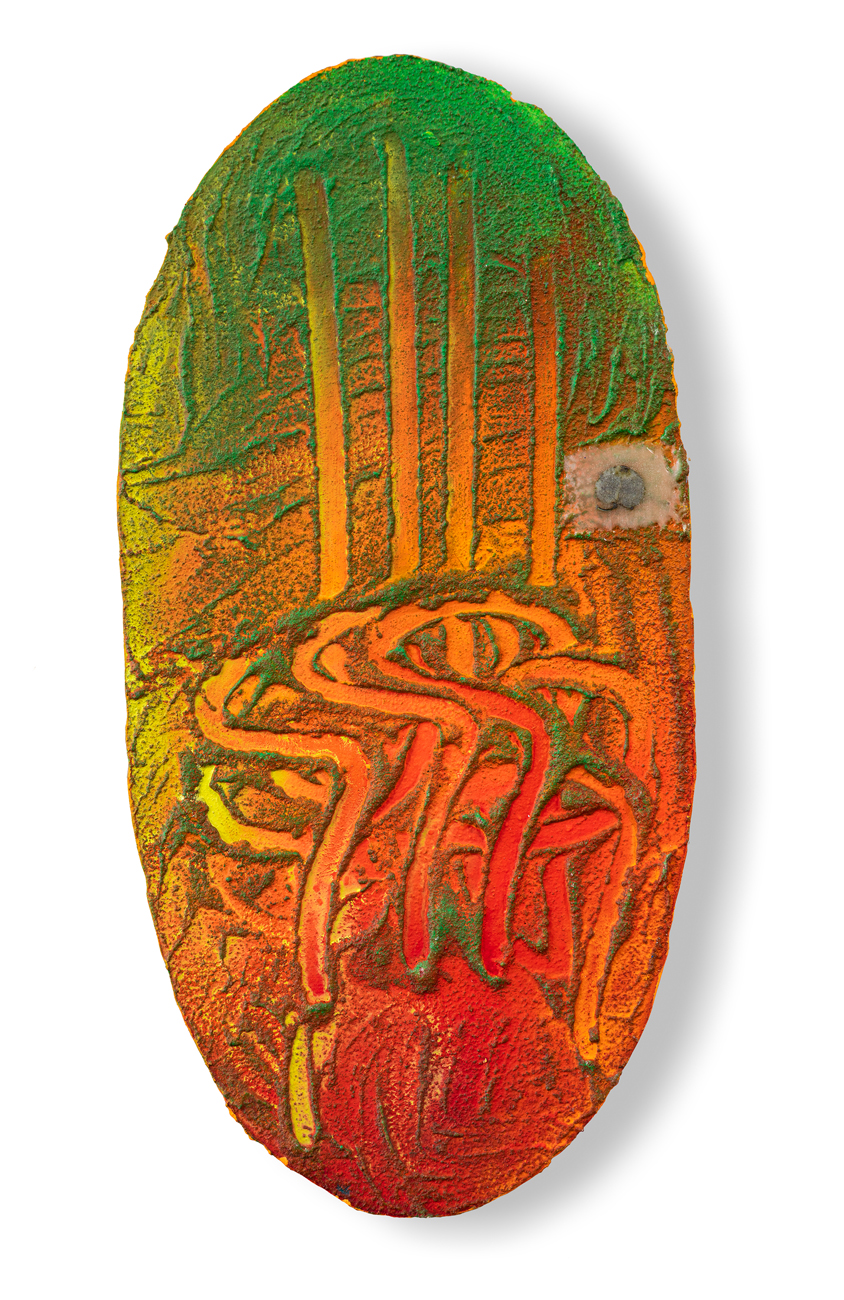 Resina, pigmenti e foglia applicati su tavola