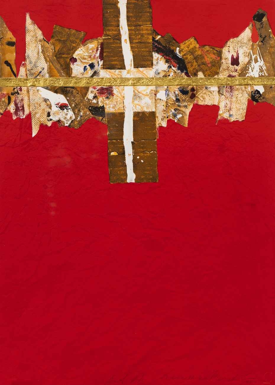 Litografia su carta Graphia-Sicars di puro cotone da 340gr tirata in 13 colori, con rilievo a secco e stampa in oro a caldo
