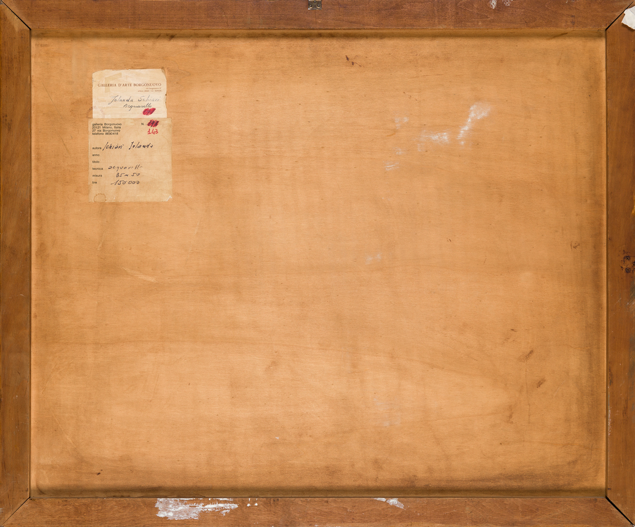 Etichette e timbro della Galleria d'Arte Borgonuovo (MI) al retro
