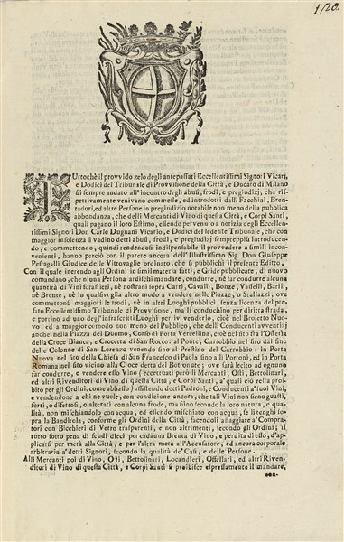 Rara raccolta dei provvedimenti emanati dal Tribunale di Provvisione, l'organo che amministrava i diritti della città di Milano sulle imposte diretti, su numerose merci, dal grano al vino passando per il pesce, la cera e i confetti. Il periodo coperto va dal 1714 al 1750 ed è uno spaccato sui traffici commerciali cittadini.