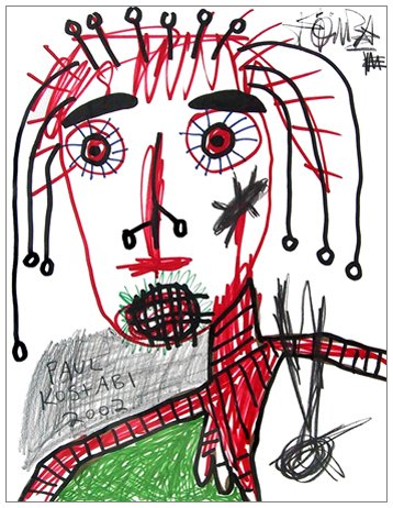 PAUL KOSTABI Whittier 1962 Toomba, 2002 T.m. su carta 30,5 x 23. Firma e data in b. a s., titolo in a. a d.; sul verso titolo, firma e data. Autentica dell’autore su foto. Pubbl.: “Paul Kostabi” cat. mostra a cura di Silvio Guarasci, Saletta Viviani, Pisa, 1 – 31 dicembre 2007, p.15.