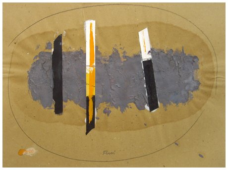 WALTER FUSI Udine 1924 Senza titolo, 1996 T.m. e collage su carta povera 32 x 44. Firma in b. al c.; sul cartone di chiusura firme, tecnica, data e misura. Autentica dell’autore su foto.