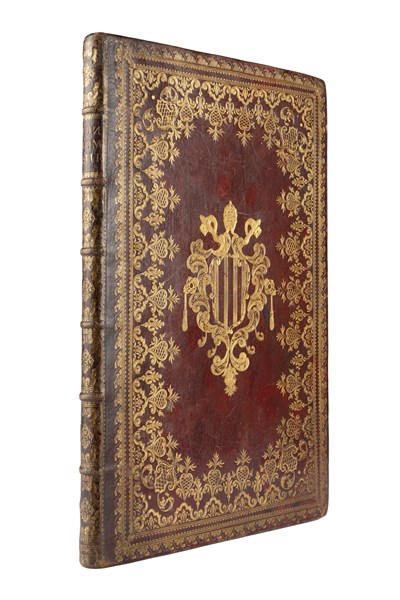 Folio (415 x 280mm). Solo terza parte, stampato in rosso e nero, testo su due colonne entro cornice, numerose incisioni calcografiche a mezza pagina nel testo, iniziali incise. Legatura coeva in piena pelle alle armi di Benedetto XIV inquadrate da ricca bordura floreale entro cornice a dentelle, titolo e decori in oro al dorso, tagli dorati, sguardie marmorizzate preservata entro cofanetto moderno. (Lievi segni, doratura dei tagli sbiadita).