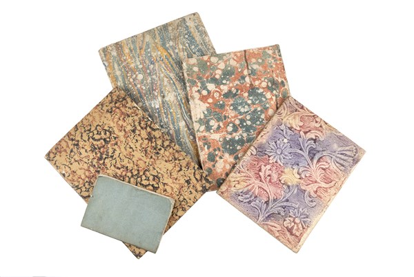 Folio (325 x 230mm). Engraved title in French and Italian, engraved notice to the reader, 9 engraved plates. Contemporary marbled and speckled decorated paper.