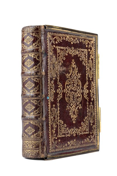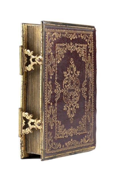 Buona copia in marocchino rosso decorato in oro del celebre libro d'ore del Piazzetta.