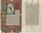 Folio (315 x 205mm). 54 pp., elegante pagina miniata con figura della Vergine e cornice floreale all'inizio del testo, testo inquadrato da bordura rossa, iniziali dorate su sfondo colorato, le ultime pagine con firme e note manoscritte di mano diversa (poche pagine leggermente abrase). Pelle coeva decorate a secco con sigillo plumbeo (senza lacci, graffiato). Provenienza: alcune note di possesso coeve al foglio di guardia.