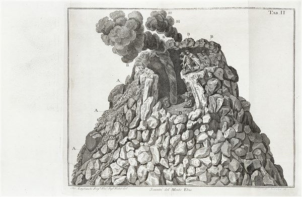 Rare first edition, complete with also its sixth volume, of the well known treatise on the last great journey of the abbot, geologist, volcanologist and mineralogist Lazzaro Spallanzani. Inside are detailed descriptions of Vesuvio's, Etna's and Sicily's ilslands' volcanic activity, studies on the Appennino and on the animals present on the lands explored.