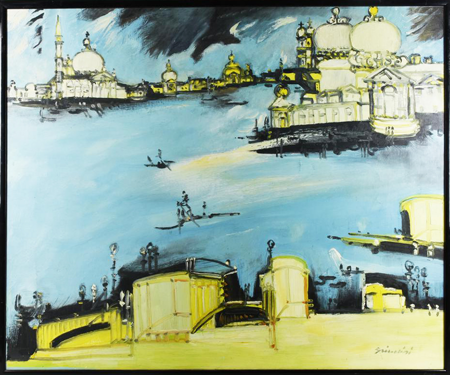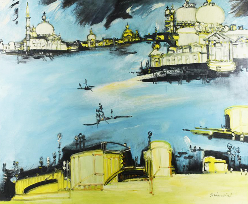Remo Brindisi BACINO DI SAN MARCO olio su tela, cm 80x100 firma sul retro:...