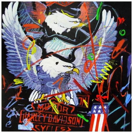 ENRICO MANERA Asmara (Eritrea) 1948 Harley, 2002 Olio e t.m. su tela 60 x 60. Sul verso firma, data e titolo. Autentica dell’autore su foto in esecuzione.