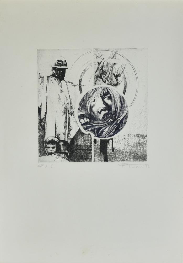 Piero Tredici SENZA TITOLO acquaforte su carta, battuta cm 20,5x19,5, su...