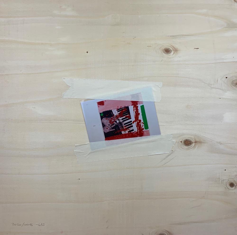 tecnica mista e collage su tavola, cm 62x62