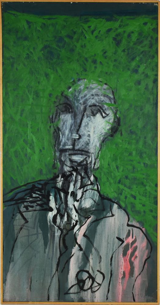 Giovanni Checchi PERSONAGGIO IN VERDE olio su tela, cm 100x50,5 sul telaio:...