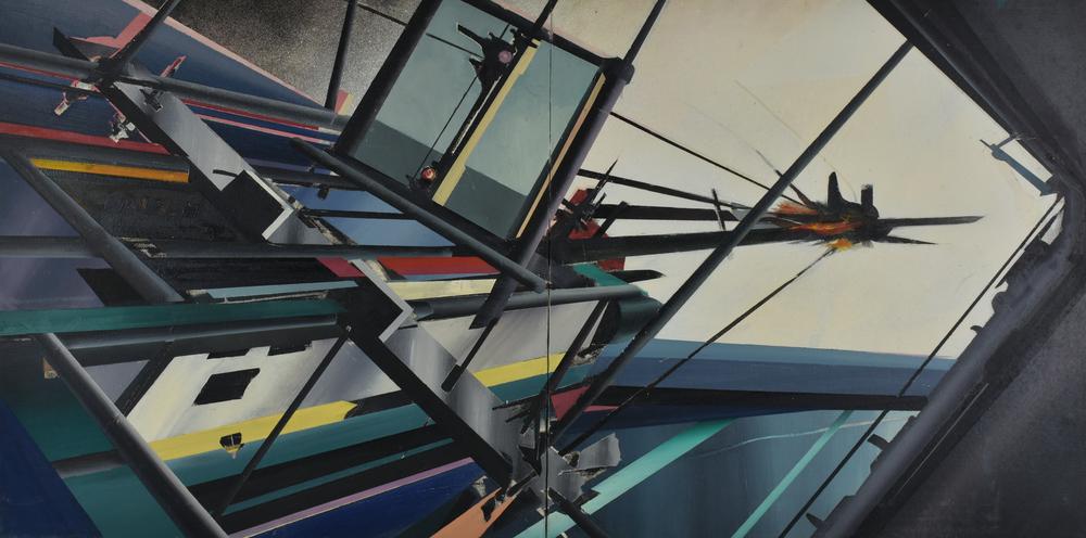 Giuseppe Caccamo INTERCETTATORE olio su tela, cm 50x100 sul retro: firma,...