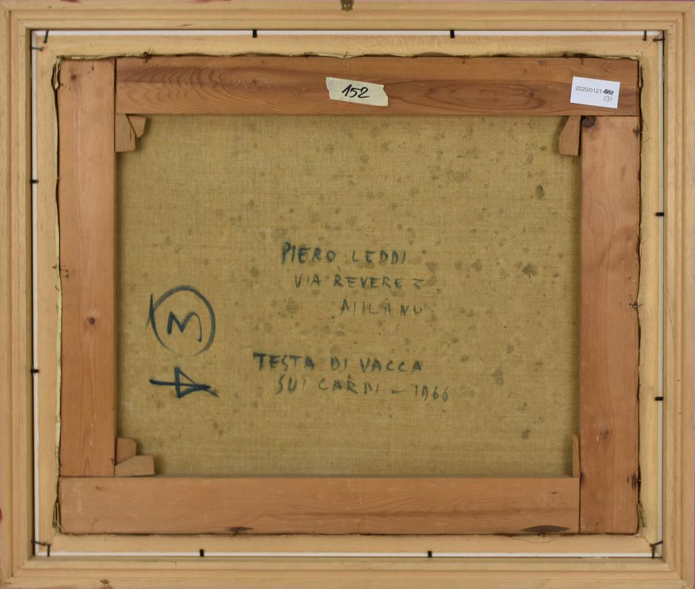 Piero Leddi TESTA DI VACCA SUI CARDI olio su tela, cm 54x65 firma e data sul...