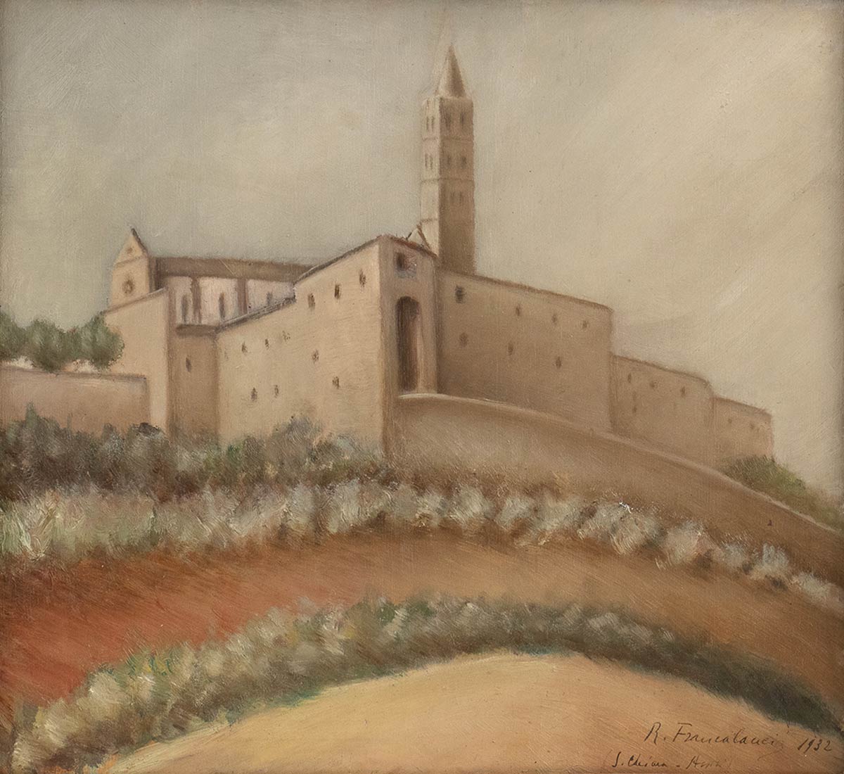 Firma, titolo e data in basso a destra: R. Francalancia, Santa Chiara, Assisi, 1932