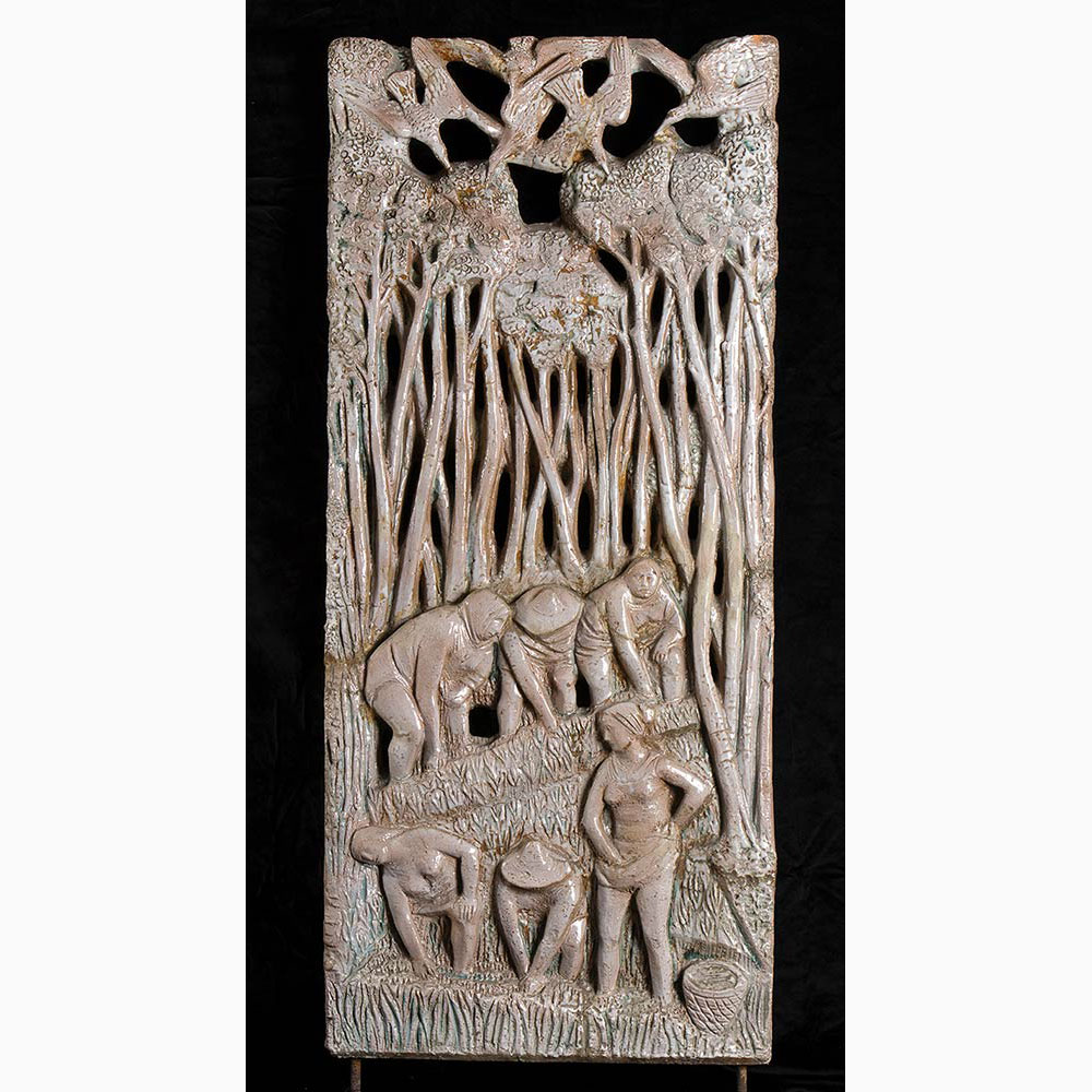 Bassorilievo in maiolica smaltata, 120 x 52 x 5 cm