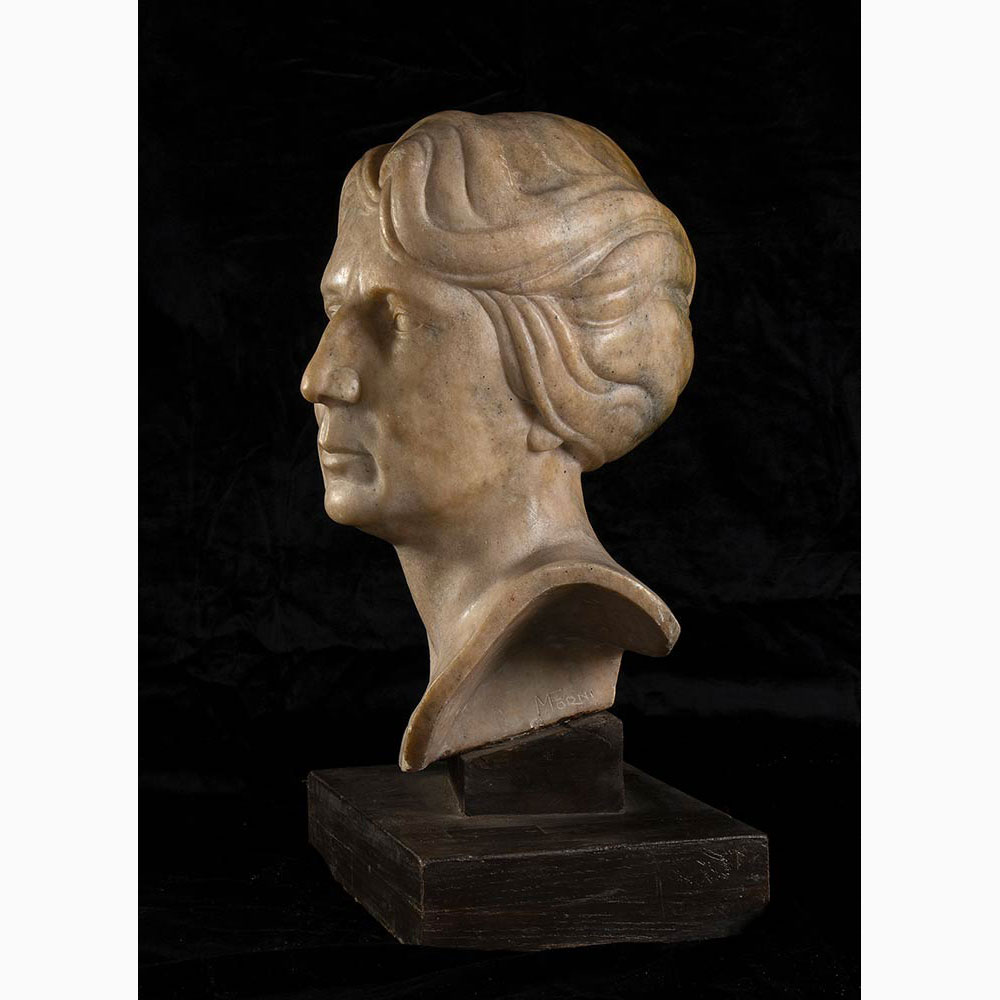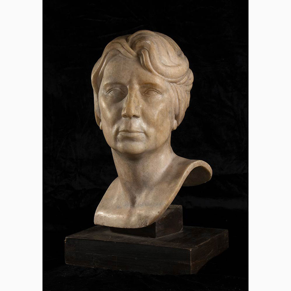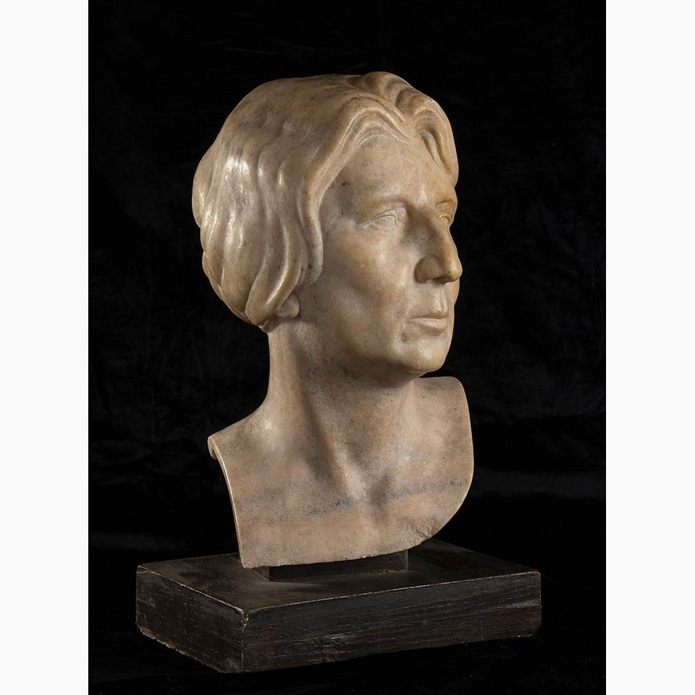 Scultura in marmo bianco su base lignea, 40 x 20 x 20 cm (45 x 20 x 20 cm con la base)